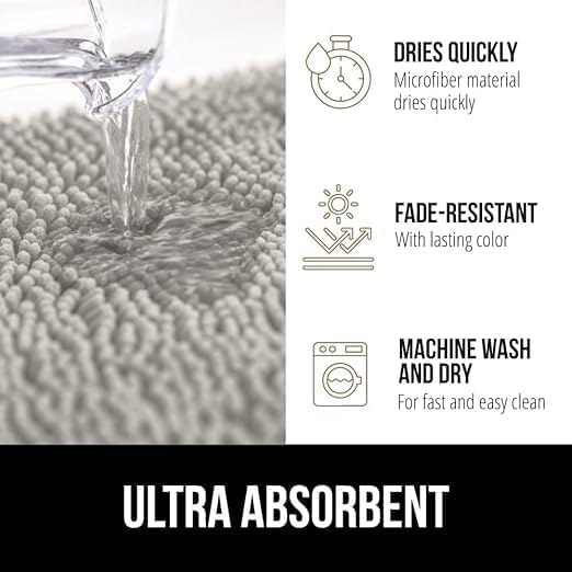 - نعومة وسميكة إضافية - سجادات الحمام المصنوعة من قماش شانيل مصنوعة من آلاف شعيرات البوليستر الفردية، بجودة سميكة للغاية، مما يسمح لأصابع قدميك بالانغماس في الراحة والرضا الذي توفره سجادة أرضية حوض الاستحمام من العتبة. تتميز بزغب ناعم يهدئ الأقدام المتعبة، ويحمي أصابع القدم من الأرض الباردة، ويوفر راحة ودعم بإمتياز.