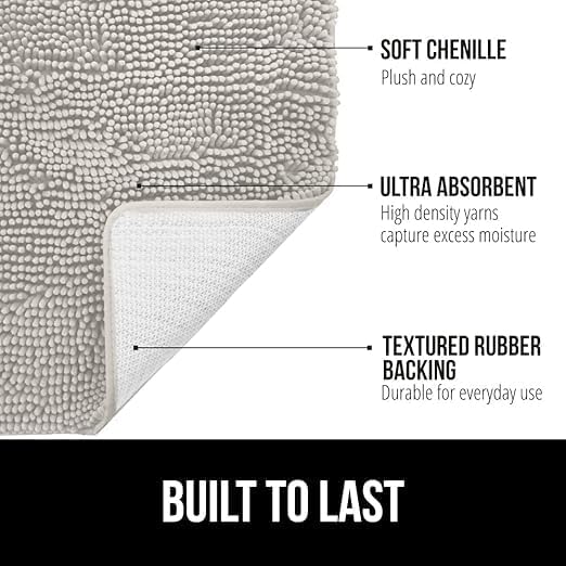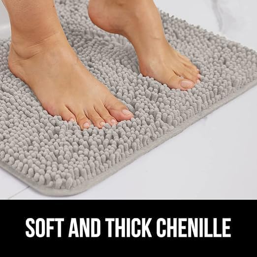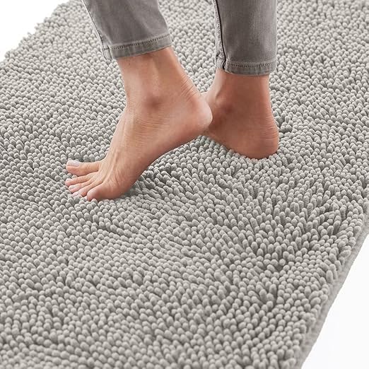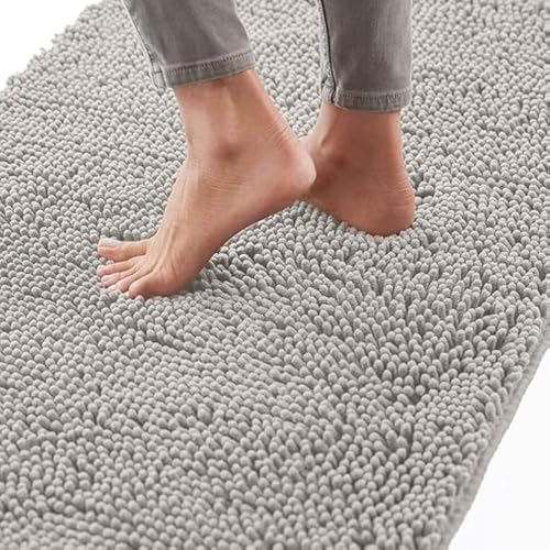 Generic - سجادة حمام غير قابلة للانزلاق سميكة ومتينة من قماش الشنيل فائق الامتصاص للماء وسريعة الجفاف لاحواض الاستحمام ودش المطر وتحت الحوض (رمادي فاتح 40 × 60 سم)