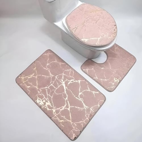 Generic - طقم دواسات الحمام- المعاصرة - إكسسوارات رخامية غير قابلة للانزلاق مكونة من 3 قطع، تتضمن غطاء مرحاض وسجادة حمام قابلة للغسل لتجديد الحمام بشكل عصري (وردي)