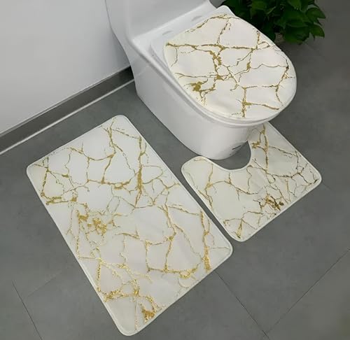 Generic - طقم دواسات الحمام- المعاصرة - إكسسوارات رخامية غير قابلة للانزلاق مكونة من 3 قطع، تتضمن غطاء مرحاض وسجادة حمام قابلة للغسل لتجديد الحمام بشكل عصري (ابيض)
