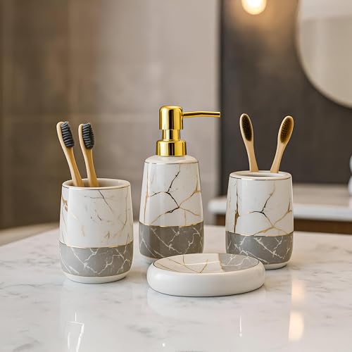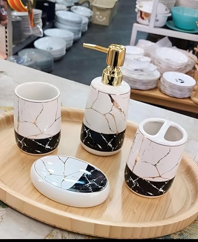 - مثالية لترقية حمامك أو كهدية خاصة لأحبائك، هذه المجموعة ترفع الديكور إلى مستوى جديد بفضل موادها عالية الجودة وتصميمها الأنيق.