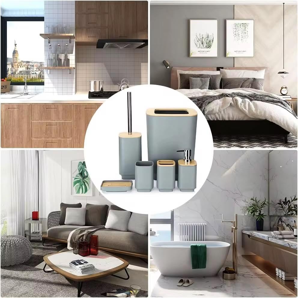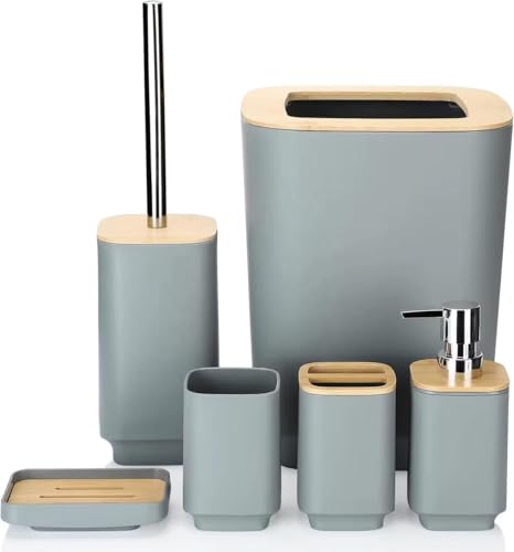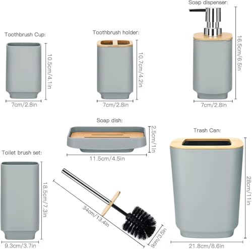 Generic - مجموعة ملحقات حمام شاملة تتضمن موزع صابون وحامل فرش أسنان وفرشاة مرحاض لتحديث ديكور الحمام الأنيق (لون رمادي 2)، مجموعة من 6 قطع