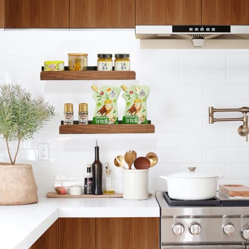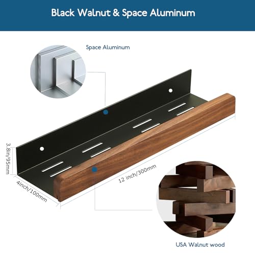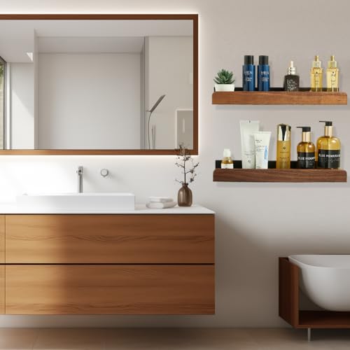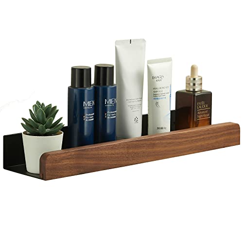 FunViet - رف حمام لاصق يثبت على الحائط، رف زاوية عائم من خشب الجوز الصلب بتصميم ريفي مع حواف للمطبخ وغرفة النوم وغرفة الغسيل