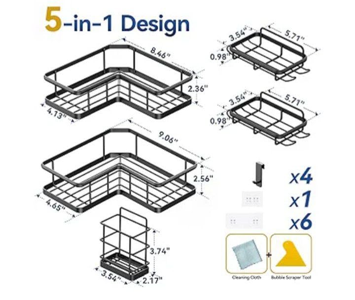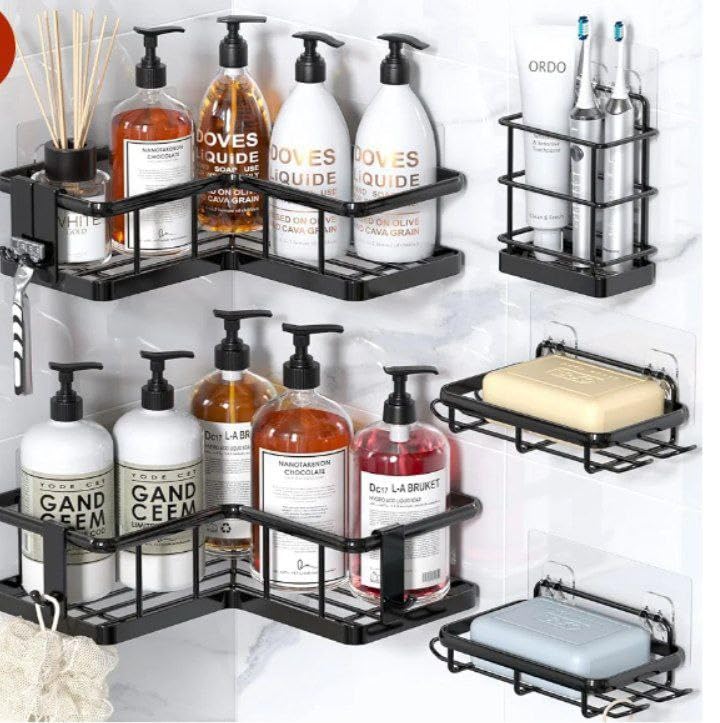 Generic - حامل شاور الحمام المعلق على الحائط، رفوف تخزين سوداء معدنية، حامل شامبو ومستلزمات الاستحمام، مجموعة من 5قطع
