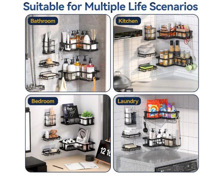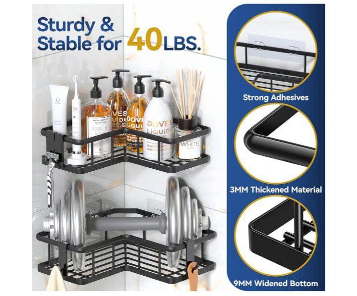 - تصميم متعدد المستويات: رفوف حمام مثبتة على الحائط مع تصميم أنيق باللون الأسود، توفر مساحة تخزين منظمة متعددة المستويات