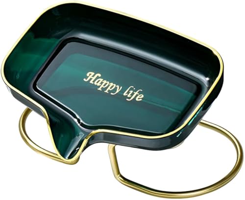 Generic - حامل صابون للحمام - صينية سيراميك انيقة بتصميم اوراق اللوتس واطار ذهبي، ذاتية التصريف، تحافظ على الصابون جافًا، متينة وانيقة للاستخدام اليومي.