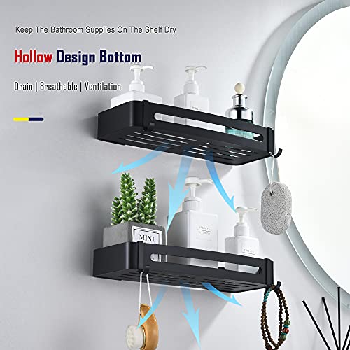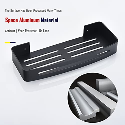 maifey - رف تخزين الحمام رف دش بدون حفر بتثبيت لاصق من الألومنيوم، منظم يثبت على الحائط للحمام بسلة تخزين مع علاقات فوط مقاوم للصدأ وسهل التنظيف، تصميم مربع، 2 طبقة، أسود