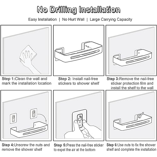 - [تركيب بدون ثقب] يستخدم صمغ بدرجة هندسية سهل التركيب قوي وليس من السهل سقوطه ويمكنه حمل المزيد من مستلزمات الحمام أو المطبخ دون القلق من سقوطه.