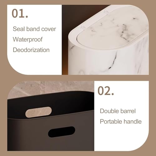 BEPOPWAVE - سلة مهملات للحمام مع اغطية، سلة مهملات بلاستيكية بنمط خشبي رخامي، سلة مهملات صغيرة مع غطاء للحمام، سلة نفايات عصرية للمنزل الداخلي والفندق (نمط رخامي بلاستيكي)