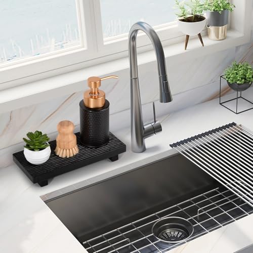 zoocatia - منظم حمام لديكور منزل المزرعة، حامل خشبي لملحقات المطبخ، حامل الصابون للحوض والطاولة وطاولة الزينة، بأبعاد 24× 13 سم ولون بني داكن