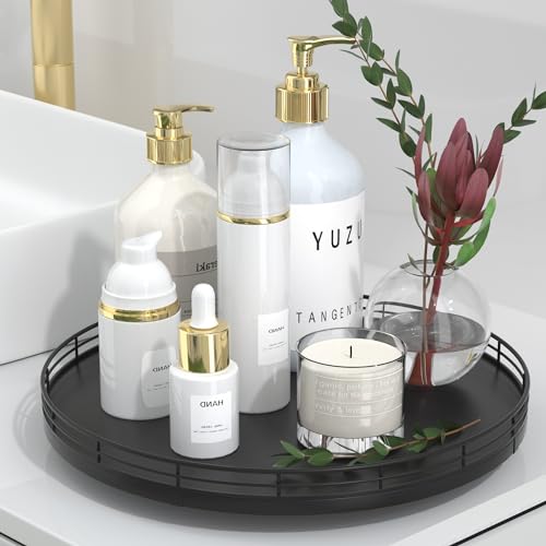 generic - صينية حمام للمنضدة، صينية فانيتي من خشب البلوط مقاس 12 انش للعطور واللوشن والشموع والمكياج والمجوهرات، حامل صابون، منظم خزانة الملابس، منظم طاولة القهوة، ديكور للتنظيم والتخزين، اسود