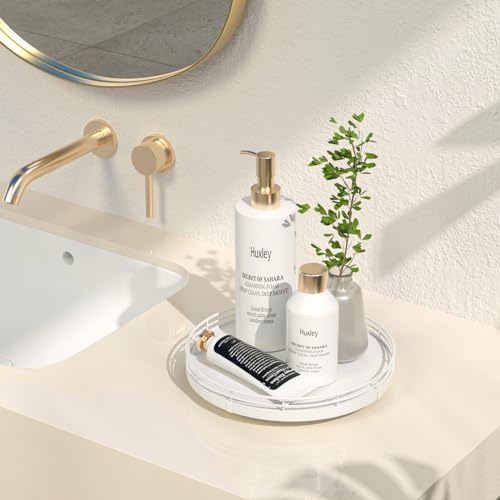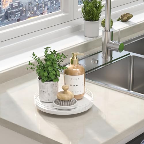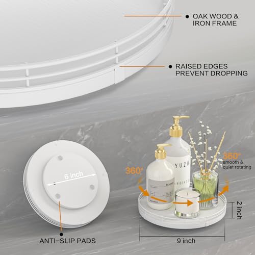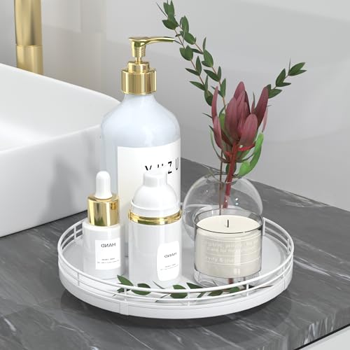 Oroyutor - صينية حمام لطاولة الزينة من خشب البلوط للعطور واللوشن والشموع والمكياج والمجوهرات، حامل صابون ومنظم دولاب ملابس ومنظم طاولة القهوة، ديكور للتنظيم والتخزين، لون أبيض، 22.86 سم