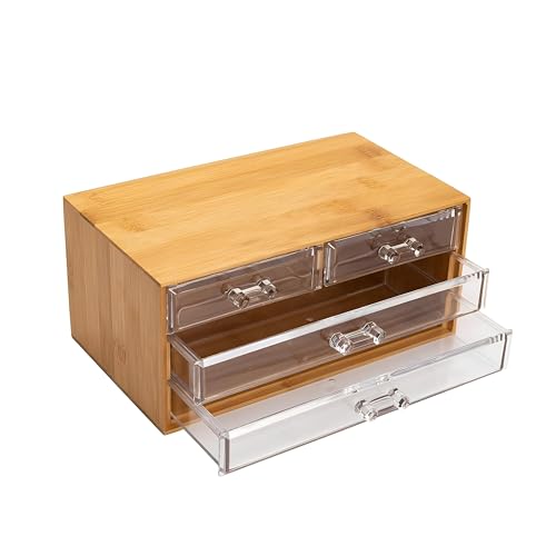 Generic - صندوق فانيتي للحمام - منظم من الخيزران الشفاف للمكياج وادوات التجميل واكسسوارات الشعر ومنتجات العناية بالبشرة بتصميم صغير وعملي
