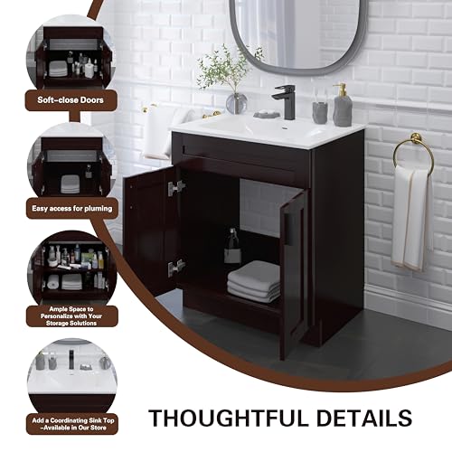 Vanity Atelier - قاعدة حوض لخزانة التزين للحمام جاهزة للتجميع، عرض 61 سم/ 76 سم/ 91 سم (قاعدة تسريحة بلون اسبريسو شيكر، مقاس 61 سم)