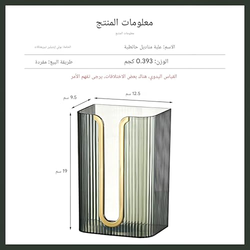 - حجم مثالي، تضمن الأبعاد المدروسة لحامل المناديل هذا تنظيمًا أنيقًا للمناديل ومستلزمات الحمام، مما يجعله إضافة عملية لأي إعداد حمام عصري يقدر الترتيب والراحة.
