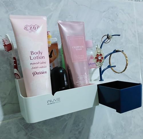 - توفير المساحة: يتم تثبيته على الحائط لتوفير مساحة الطاولة والحفاظ على حمامك منظماً وخالياً من الفوضى مع سهولة الوصول إلى جميع أغراضك اليومية