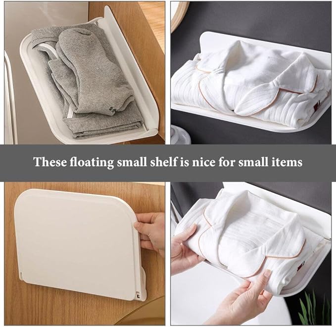- رف بلاستيكي قابل للطي سهل التركيب، متعدد الاستخدامات وجمالي، رف تخزين مثبت مرن وقابل للطي ويمكن فتحه في أي وقت. قابلة للطي ومتينة وعصرية. يمكن طيها عند عدم الاستخدام، مما يوفر المساحة ويسهل الحياة مع استخدامات متعددة لشيء واحد. يمكن تثبيتها على الأسطح الملساء مثل الحمامات والمطابخ وغرف النوم وغرف المعيشة والفنادق والشرفات وما إلى ذلك. لتخزين الملابس والمناشف والصابون والهواتف المحمولة والمفاتيح والمحافظ والنظارات الشمسية وغيرها من الضروريات والأشياء الصغيرة.