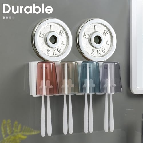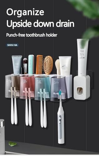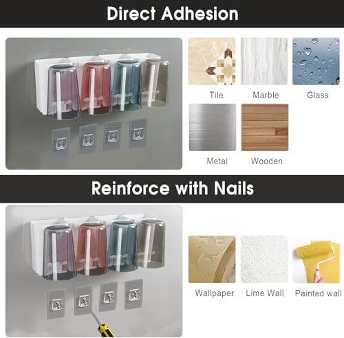 Generic - منظم فرشاة الأسنان ومعجون الأسنان مع حامل يثبت على الحائط للحمام، مزود بعدد 4 أكواب أكريليك لاصق قوي للتثبيت بدون ثقب، سهل التركيب وموفر للمساحة للاستخدام المنزلي والمطبخ