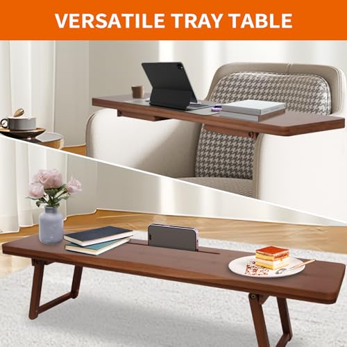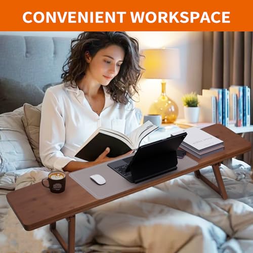 QoQoLiLi - صينية حوض الاستحمام مع اقدام قابلة للطي قابلة للتعديل، لوح من الخيزران الصلب السميك، تصميم بسيط، صينية متعددة الاستخدامات للسرير والكنبة والطاولة، قوية ومتينة