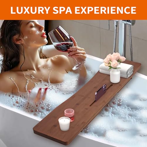 - 【تصميم بسيط وجميل】 بفضل تصميمها الأنيق والبسيط، تعزز صينية حوض الاستحمام هذه المظهر الجمالي لأي ديكور حمام بينما تعمل كأساسيات استحمام للنساء اللاتي يرتاحن، الأسطح المنحنية الجميلة تعزز تجربة الاستحمام مع الأسطح المنحنية المثالية، دلل نفسك بتجربة الاستحمام الأكثر راحة على الإطلاق واستمتع بعلاج السبا المنزلي بفخامة. صينية حوض الاستحمام المصنوعة من الخيزران هذه هي هدية مثالية لعيد الحب وعيد الشكر والكريسماس والانتقال إلى منزل جديد.