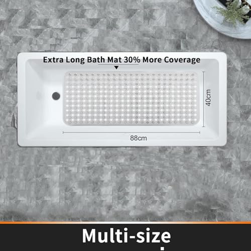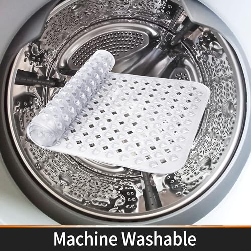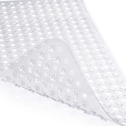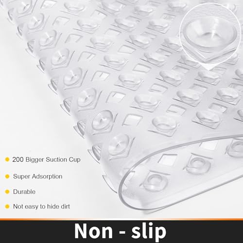Khazna - سجادات حوض الاستحمام غير قابلة للانزلاق مع فتحات تصريف وأكواب شفط للحفاظ على نظافة الأرضية، ناعمة على القدمين، أكسسوارات الحمام، سجادات حمام قابلة للغسل في الغسالة (80 × 40 سم) (شفاف)