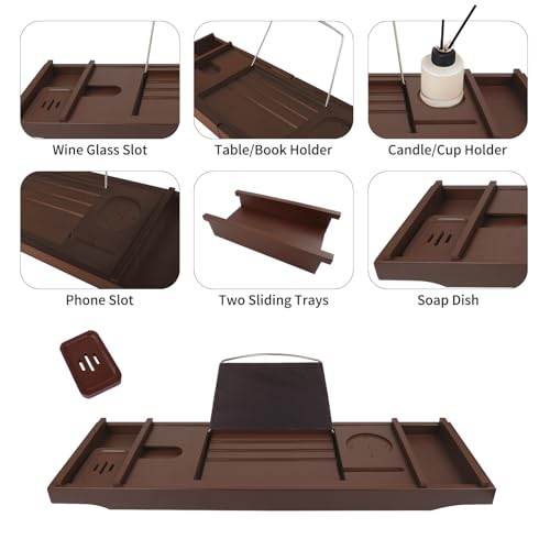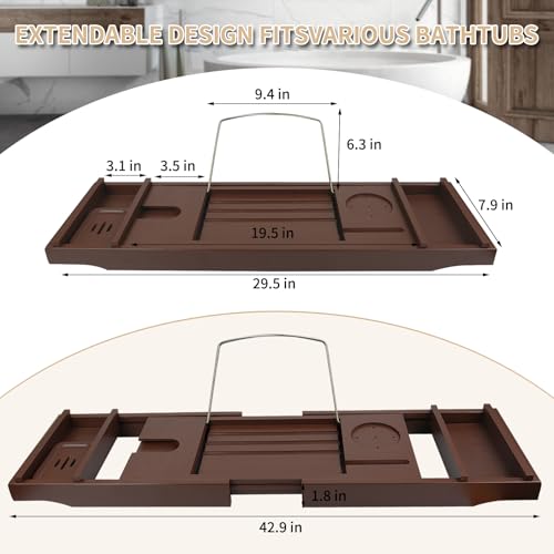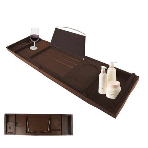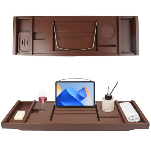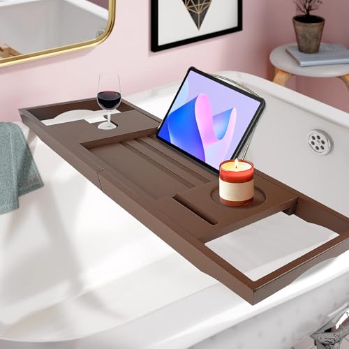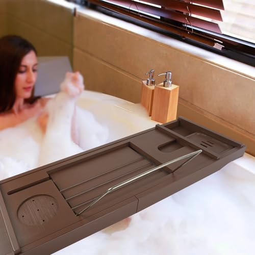 Graceware - صينية حوض الاستحمام، اكسسوارات حمام من الخيزران، صينية حمام قابلة للتوسيع، يمكن وضع كتاب وحامل مدمج للتابلت والهواتف الذكية والنبيذ، هدايا مريحة للنساء (بني)