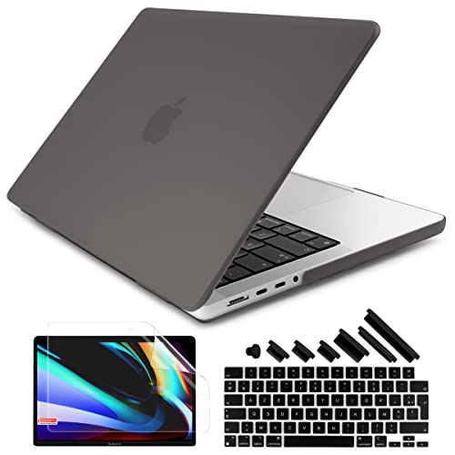 Batianda - جراب حماية صلب وحافظة لوحة مفاتيح وشاشة حماية لجهاز ماك بوك برو 14 بوصة إصدار 2021 موديل A2442 مع دعم خاصية التعرف على الوجه واللمس من باتياندا، رمادي مطفي