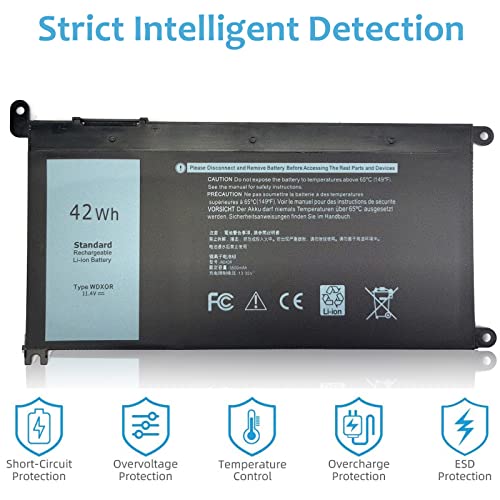 Batomdrt - بطارية WDX0R WDXOR 42Wh لديل انسبيرون 15 5565 5567 5568 5570 5578 7560 7570 7569 7579 13 7368 7378 7375 5368 5379 17 5 765 5767 5770 3CRH3 T2JX4 FC92N من باتوم دايركت 11.4 فولتs الليثيوم