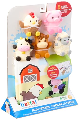 Battat - عرائس الأصابع بتصميم حيوانات المزرعة مع كتاب من باتات
