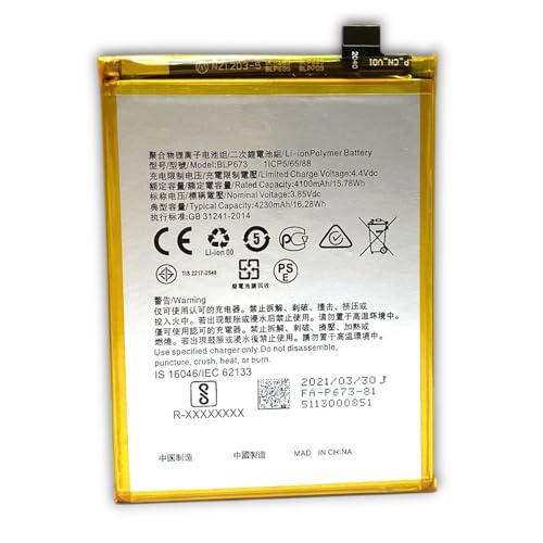 Generic - بطارية محمولة جديدة BLP673 من نوع ليثيوم ايون بوليمر، بسعة 4100 مللي أمبير، متوافقة مع أجهزة أوبو A3s/A5/A5s/AX7.