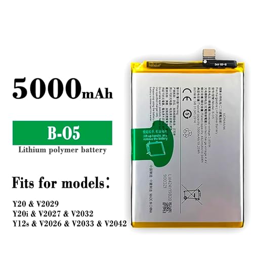 Generic - بطارية ليثيوم ايون بوليمر بديلة جديدة 5000mAh B-O5 لفيفو Y20 20i Y12S V2029 V2027 بطارية جوال B-O5 بطاريات مدمجة جديدة تمامًا