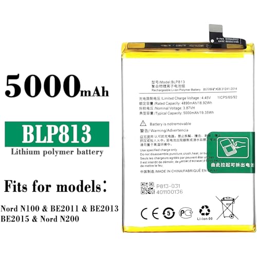 Generic - بطارية BLP813 متوافقة مع موبايل ون بلس نورد N100 وN200 وBE2011 وBE2013 وBE2015، سعة 5000 مللي امبير في الساعة