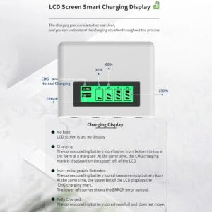 - شاشة بسيطة: يتميز بشاشة LCD واضحة تعرض حالة الشحن لكل فتحة بطارية.
