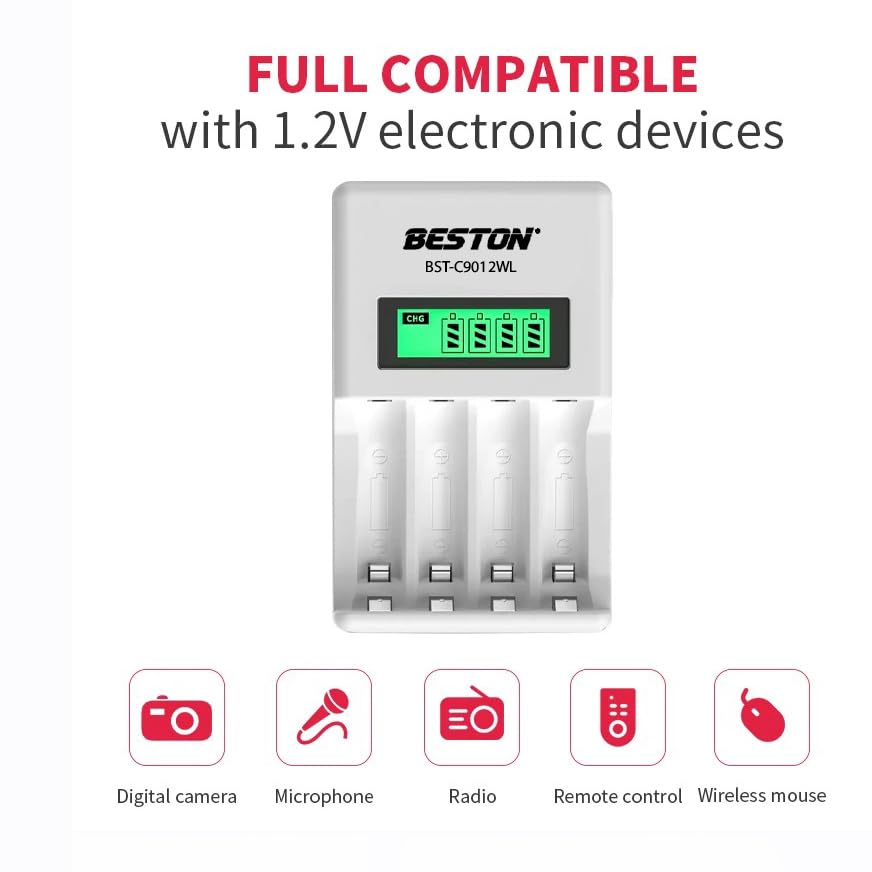 - شحن فعال: يأتي شاحن بطارية بيستون هذا مع 4 بطاريات ايه ايه من نوع نيكل هيدريد المعادن 2500 ميلي امبير في الساعة قابلة لإعادة الشحن لضمان الشحن المريح.
