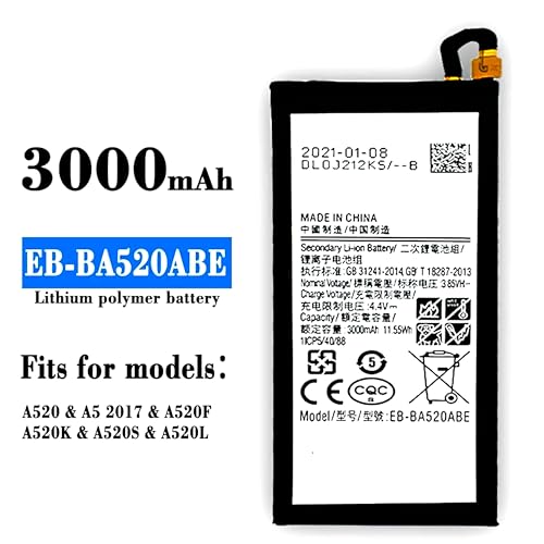 Generic - بطارية ليثيوم أيون بوليمر بديلة عصرية طراز EB-BA520ABE سعة 3000 ميلي امبير في الساعة متوافقة مع سامسونج جالاكسي A5 إصدار 2017، A520 SM-A520F A520K A520L A520S A520W A520F/DS