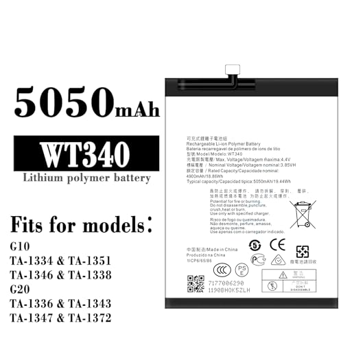 Generic - بطارية ليثيوم بوليمر WT340 بقوة 5050 مللي امبير في الساعة 19.44 وات في الساعة لجهاز نوكيا G10, G20, TA-1338, TA-1347, TA-1372, TA-1365, TA-1334