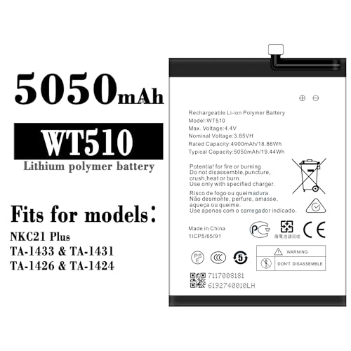 Generic - بطارية لموبايل لنوكيا WT510، بطارية ليثيوم ايون بوليمر 5050 مللي امبير في الساعة، متوافقة مع نوكيا C21PLUS، والطرازات TA-1433، TA-1431، TA-1426، TA-1424، بأقصى جهد 4.4 فولت، وحجم 7×2×2 سم
