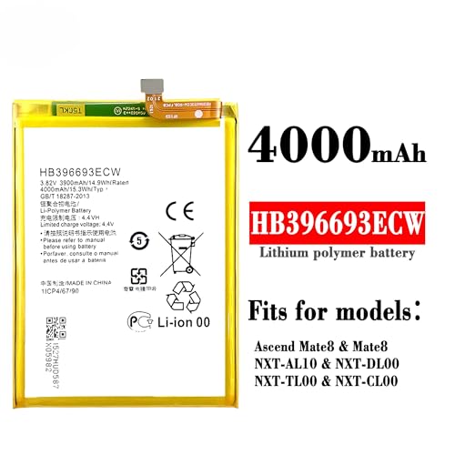 Generic - بطارية HB396693ECW لهواوي ميت 8، بطارية ليثيوم ايون بوليمر 3900 مللي أمبير في الساعة، 15.0 واط في الساعة، متوافقة مع هواوي اسيند ميت 8/ ميت 8/ NXT-AL10/ NXT-DL00/ NXT-TL00/ NXT-CL00 بطاريات شاملة