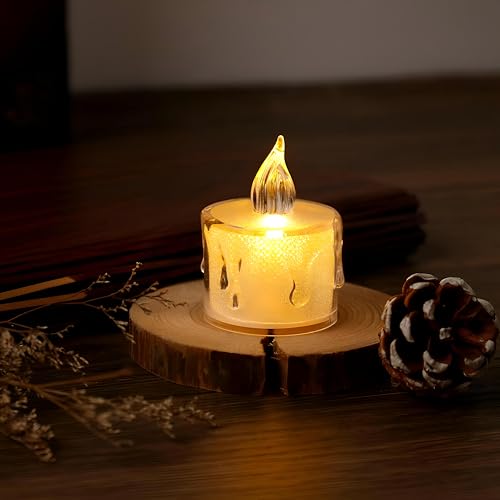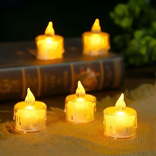 - تحاكي شموع ضوء الشاي LED هذه الوميض اللطيف والطبيعي للهب الحقيقي، مما يوفر جوًا دافئًا وجذابًا دون أي خطر حريق، مما يجعلها مثالية لإنشاء أماكن حميمة أثناء العشاء أو العطلات أو اللحظات الرومانسية.