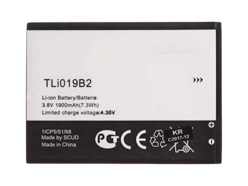 Generic - بطارية TLi019B2 لهاتف الكاتيل ون تاتش بوب C7 بسعة 1900 مللي أمبير في الساعة، ليثيوم أيون بوليمر 15.0 وات للساعة، متوافقة مع طراز OT-7041 / 7041D بشريحتين، CAB1900003C2، بطاريات عالمية