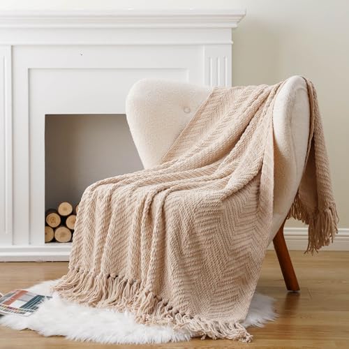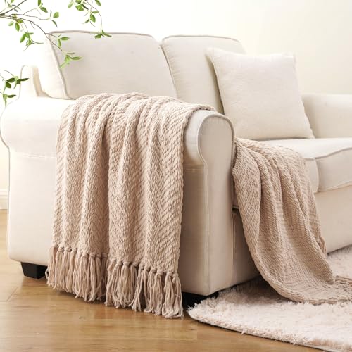 BATTILO HOME - بطانية كنبة من نسيج محبوك بنقشة متعرجة من باتيلو، 1.52 م طول × 1.27 م عرض، لون بيج