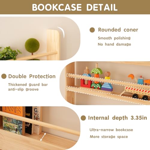 - 【ثبات آمن على الأطفال】يتميز رف الكتب للأطفال بحواف مرتفعة تمنع الأشياء من الانزلاق، ويضمن التثبيت الآمن على الحائط بقاء الرف ثابتًا حتى في المنازل النشطة. مصمم لتقليل مخاطر الانقلاب للاستخدام بدون قلق
