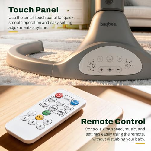 - 5 سرعات تأرجح قابلة للتعديل: تأتي الأرجوحة الكهربائية مع 5 سرعات تأرجح قابلة للتعديل، و8 أصوات موسيقية مدمجة. يمكن التحكم في سرعة التأرجح والموسيقى للأرجوحة الكهربائية باستخدام اليد أو عن طريق جهاز التحكم عن بعد.
