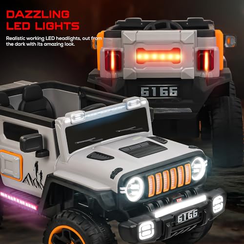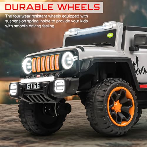 - متينة ومريحة: تتضمن سيارة الركوب الكهربائية هذه مقعدين مريحين ومقاومين للتآكل. تضمن العجلات الأربع المقاومة للتآكل تجربة قيادة سلسة لأطفالك.