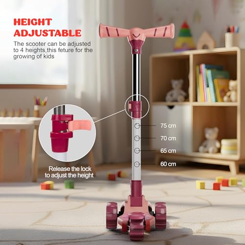 - قابل للتعديل للأطفال في مرحلة النمو: يلبي طفرات نمو طفلك مع المقود القابل للتعديل من 3 مستويات. ينمو هذا السكوتر مع طفلك من سن 3 إلى 10 سنوات، مما يضمن ملاءمة مثالية لعدة سنوات. آلية التعديل السهلة تجعل من السهل على الآباء تغيير الارتفاعات حسب الحاجة، مما يوفر راحة دائمة وسهولة الاستخدام.