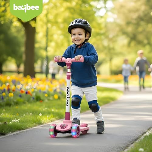 BAYBEE - بايبي سكوتر تزلج للاطفال من جلايد (2-10 سنوات) | سكوتر ركل للاطفال مع 3 عجلات، عجلات باضاءة LED من البولي يوريثين وفرامل خلفية | سكوتر للاطفال قابل للطي مع سطح مضاد للانزلاق ومقبض قابل لتعديل الارتفاع