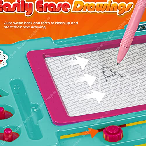 BAYBEE - لوح رسم تعليمي من بيبي، مصنوع من بلاستيك ABS، مناسب للجنسين من عمر 3 سنوات. يتميز بسطح قابل للمسح وستايلس متسلسل وأختام أشكال ومساحة رسم مستوية. يساعد في تنمية مهارات التآزر بين اليد والعين.