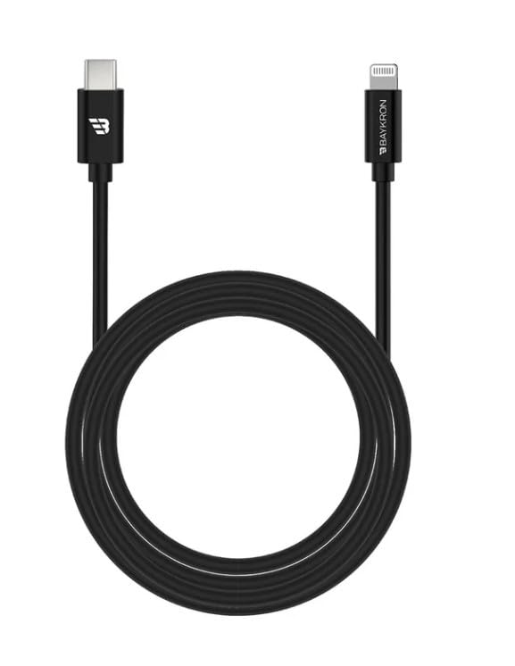 Baykron - كابل USB نوع سي إلى لايتنينج معتمد من ام اف اي 3 أمبير، طول 1.2 متر، أسود