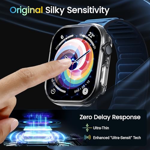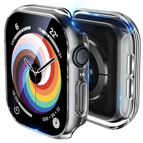 BAZO - جراب شفاف متين من البولي كربونات متوافق مع ساعة آبل سلسلة 10 (2024) مقاس 46 ملم مع شاشة حماية من الزجاج المقوى حساس للمس من بازو، جراب حماية شامل نحيف للغاية عالي الدقة لساعة اي ووتش 46 ملم، 2 قطعة