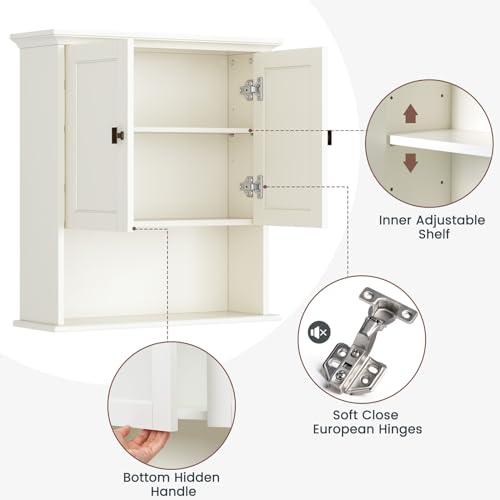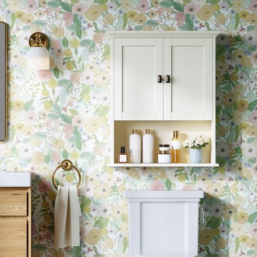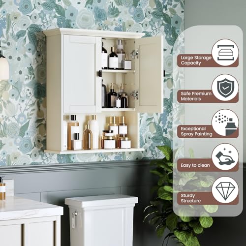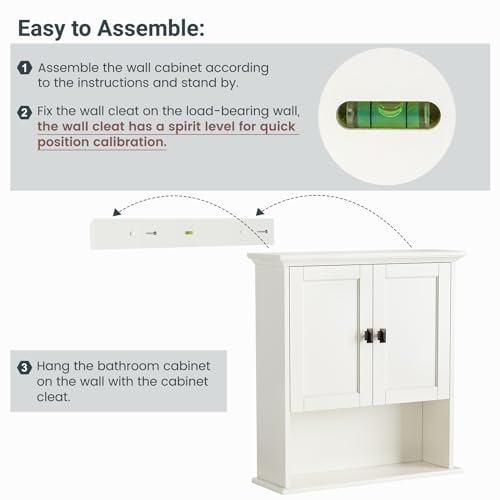 Baztin - دولاب أدوية فوق التواليت ودولاب تخزين مثبت على الحائط مع ميزان تسوية مدمج للحمام وغسيل الملابس والمطبخ وغرفة المعيشة، تصميم معلق للحمام من بازتين، أبيض كريمي